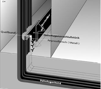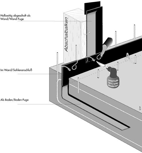 Fugensystems. Es genügt eine Beton- deckung von 3cm um einen Wasserdruck von 6bar stand- zuhalten. Die enorme Elastizität der Beschichtung verhindert an den Anschlußfugen eine eventuelle Undichtigkeit