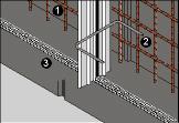 Die waterstop-Sollrissfugenschienen werden zwischen der Wandbewehrung eingebaut. Die Befestigung erfolgt mit Bindedraht an zusätzlich angeordneten U-Bügeln oder S-Haken. Auf der Schalung werden zur Herstellung einer